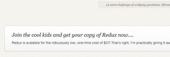 注意觀察Redux暗色背景上的淺色文字,你會發(fā)現(xiàn)它們都被添加上了投影效果?,F(xiàn)在我們可以使用CSS3中的text-shadow屬性來完成文字的投影 設(shè)計,代替了在Photoshop中完成此項工作。而且使用CSS3來給文字添加陰影自由度更高,在瀏覽器支持的情況下,你可以給任意文字添加你想要的陰 影效果。當(dāng)然IE8以下版本的瀏覽器是不支持此項屬性的,這是我們在設(shè)計中需要注意的地方。另外,和前面提到的其它設(shè)計細(xì)節(jié)一樣,陰影的效果也要足夠柔 和,不可過于強(qiáng)烈,不然很容易讓整個設(shè)計看起來有一種臟臟的感覺,顯得不夠精致。